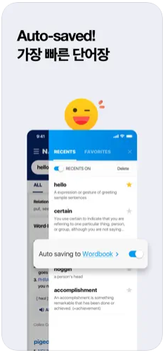 - 자동저장 기능이 있는 단어장! 원하는 단어를 검색하면 자동으로 나만의 단어 리스트가 생성되는, 세상에서 가장 빠른 단어장입니다.