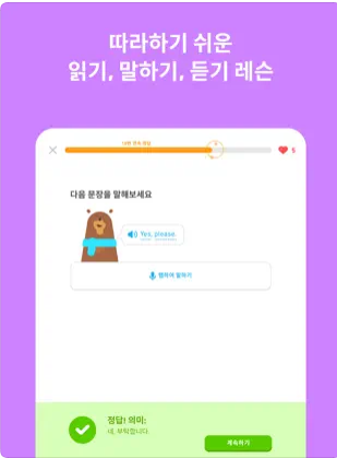 여행, 학업, 커리어, 가족과의 소통, 두뇌 건강 유지 등 어떤 목적으로 언어를 배우든 듀오링고가 함께 합니다. 지금 바로 듀오링고를 시작하여 새로운 언어를 배우는 즐거움을 경험하세요!