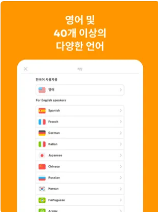 언어 전문가들이 설계한 듀오링고는 수억 명의 학습자들이 사랑하는 앱으로, 스페인어, 프랑스어, 중국어, 이탈리아어, 독일어, 영어 등 다양한 언어로 실생활 회화를 준비할 수 있습니다.