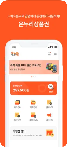 온누리상품권은 앱을 통해 손쉽게 상품권을 충전하고, 등록된 카드를 사용해 결제할 수 있는 서비스입니다.