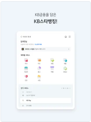 ■ KB금융그룹의 상품 조회, 주식 매매, KB Pay, 보험 설계 등 다양한 특화 서비스를 KB스타뱅킹 하나로 이용하세요.